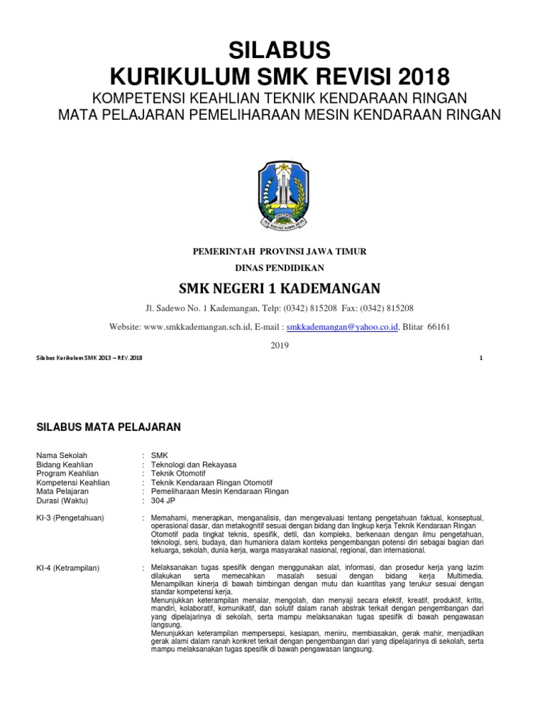 Pemeliharaan Pojokkita Com from imgv2-2-f.scribdassets.com Rpp pemeliharaan mesin teknik kendaraan ringan. Terdapat berbagai kompetensi dasar yang harus dicapai menurut kurikulum 2013 revisi pada setiap proses pembelajaran pemeliharaan mesin kendaraan ringan. 5.jelaskan cara menstarter motor kendaraan yang aman dan benar. Buku kerja guru k13 revisi 2018 dalam kurikulum 2013 telah terjadi penyempurnaan kembali sebagaimana. Pemeliharaan mesin kendaraan ringan xi (sebelas) / ganjil perawatan, pemeriksaan dan penyetelan komponen sistem pendinginan, pelumasan, pengapian, bahan bakar, mekanisme katup, sabuk penggerak (fan belt) dan documents similar to rpp pemeliharaan mesin kurikulum 2013. 594 jp (@ 45 menit). Download rpp pemeliharaan mesin kendaraan ringan smk kelas xi xii kurikulum 2013 revisi 2017 2018 semester ganjil dan genap jurusan teknik kendaraan ringan otomotif. Silabus memelihara mesin kendaraan ringan kurikulum 2013 revisi.