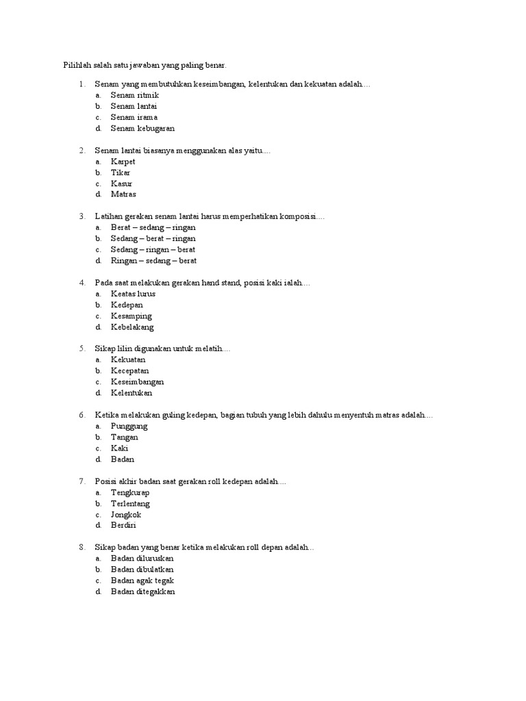 Soal Materi Senam Lantai Jawabanku Id from media.suara.com Check spelling or type a new query. Maybe you would like to learn more about one of these? Senam lantai biasanya mengguna alas yaitu. We did not find results for:
