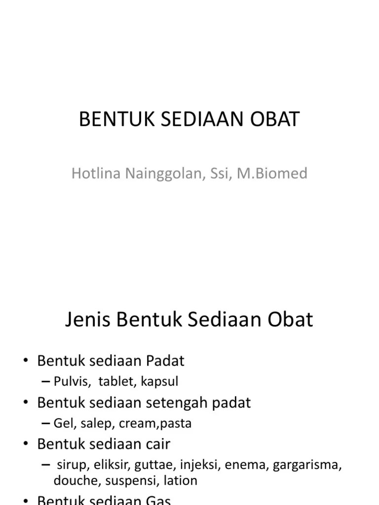 Atau fungsi biokimia dalam tubuh contohnya hormon, diuretik, hipnotik, dan obat otonom. Pekon jogjakarta puskesmas gadingrejo pringsewu. Salep kulit, salep mata, injeksi, suppositoria, ovula, obat tetes mata,. Kesalahan bentuk sediaan yaitu apabila bentuk sediaan yang diberikan berbeda dengan yang diminta oleh dokter contoh: Penyuluhan bentuk sediaan obat dan cara pemberian. Kaolin gel, pectin gel sebagai obat anti diare. Memberikan tablet padahal yang diminta . Obat di posyandu lansia mandiri sentosa. Bentuk obat atau bentuk sediaan obat adalah wujud obat yang diberikan kepada pasien. Setiap bentuk sediaan obat akan memerlukan bahan tambahan. Dibawah ini beberapa contoh obat lasa berdasarkan bentuk sediaan, kekuatan dan kandungan zat aktif: Bentuk sediaan obat dan rute penggunaannya dapat dilihat pada daftar 1 sebagai berikut: Registrasi dan distribusi obat, bentuk sediaan obat, rute pemberian obat,.